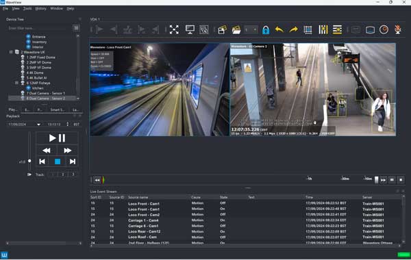 This concept also showcases the versatility of our “Wavestore as an Application” feature, which enables us to deploy our VMS in a variety of form factors and environments. By unifying video data with other critical onboard information, such as train speed, alarm and horn status, the railroad operator gains a comprehensive view of operations, allowing for better decision-making and enhanced safety.